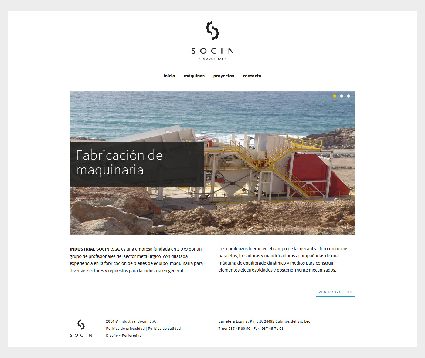 Hemos diseñado la web corporativa de Industrial Socin, empresa fundada en 1979 por un grupo de profesionales de reconocida experiencia, dedicada a la fabricación de bienes de equipo, maquinaria y repuestos para la industria en general.